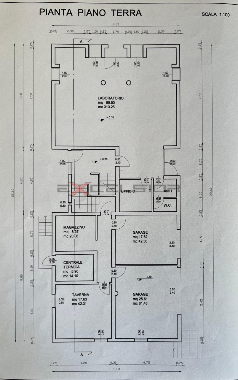 Sempre il piano terra ospita magazzino, taverna con camino, due ampi garage e centrale termica.